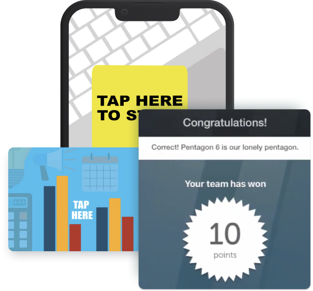 Our in-person gameplay brings teams together in a location of your choice. Guided by an expert Remote Host, you and your team will complete your activity using your own devices.