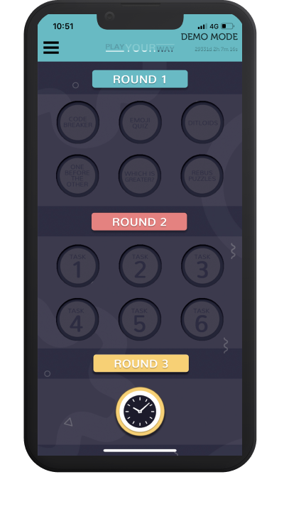 In round 3 you'll have to beat the clock! Regroup and complete trivia questions as fast as possible.